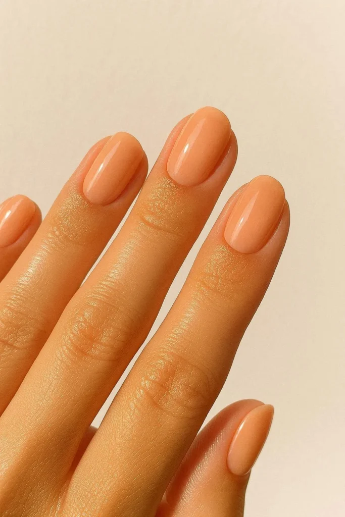 Warm, glowy, and endlessly flattering. Peachy nude tones sit right at the crossroads of soft nail ideas and everyday elegance. They give your hands a sun-kissed warmth that looks gorgeous in every season, especially spring and summer.